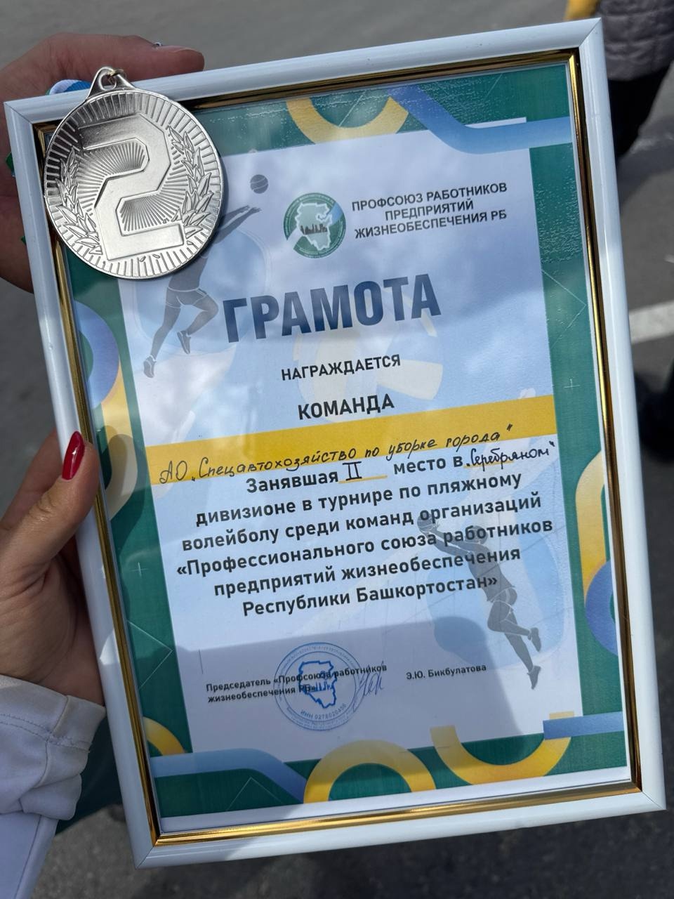 По завершении захватывающих спортивных состязаний победители были удостоены заслуженных наград. В рамках «Серебряного» дивизиона команда АО «Спецавтохозяйство по уборке города», в составе Аделины Минибаевой и Никиты Козлова, блестяще выступила и завоевала почётное второе место!
