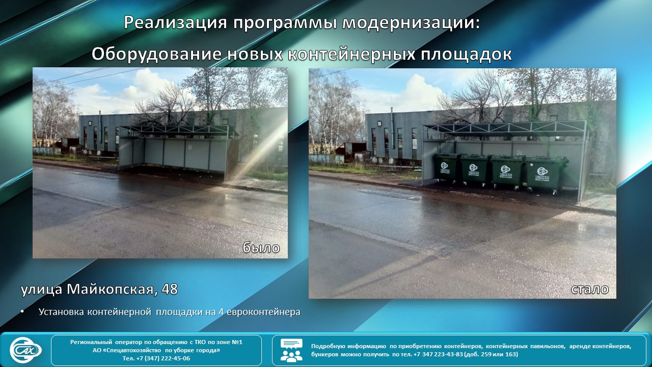 Модернизация позволяет предприятию обеспечить своевременный и качественный вывоз ТКО, а также создать более эстетичный и гигиеничный вид мест сбора отходов.