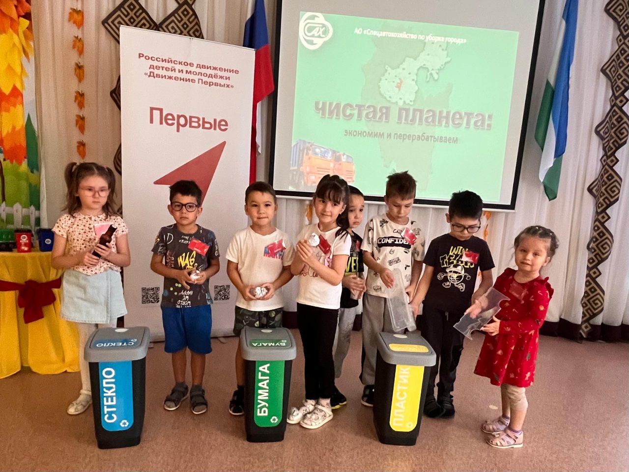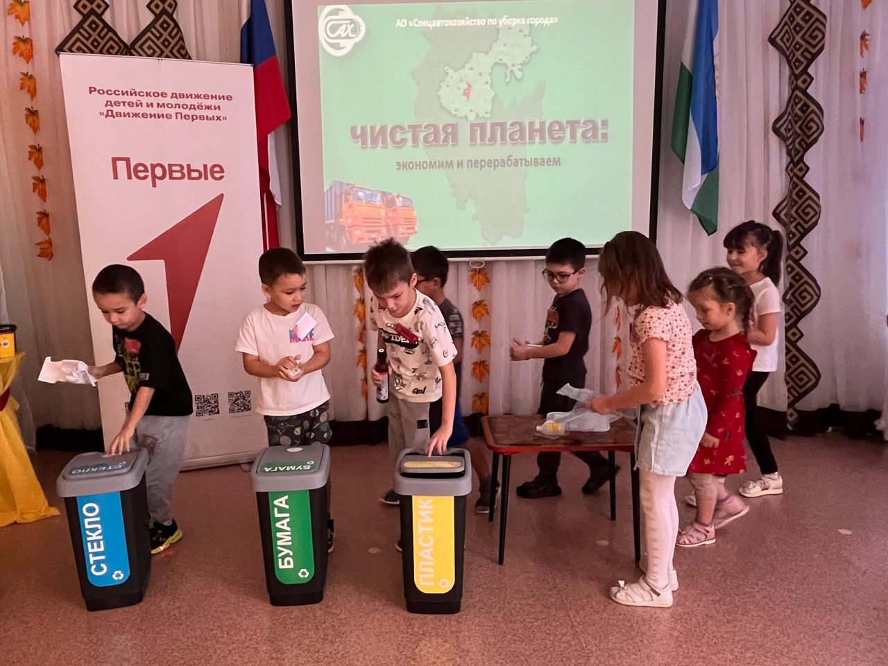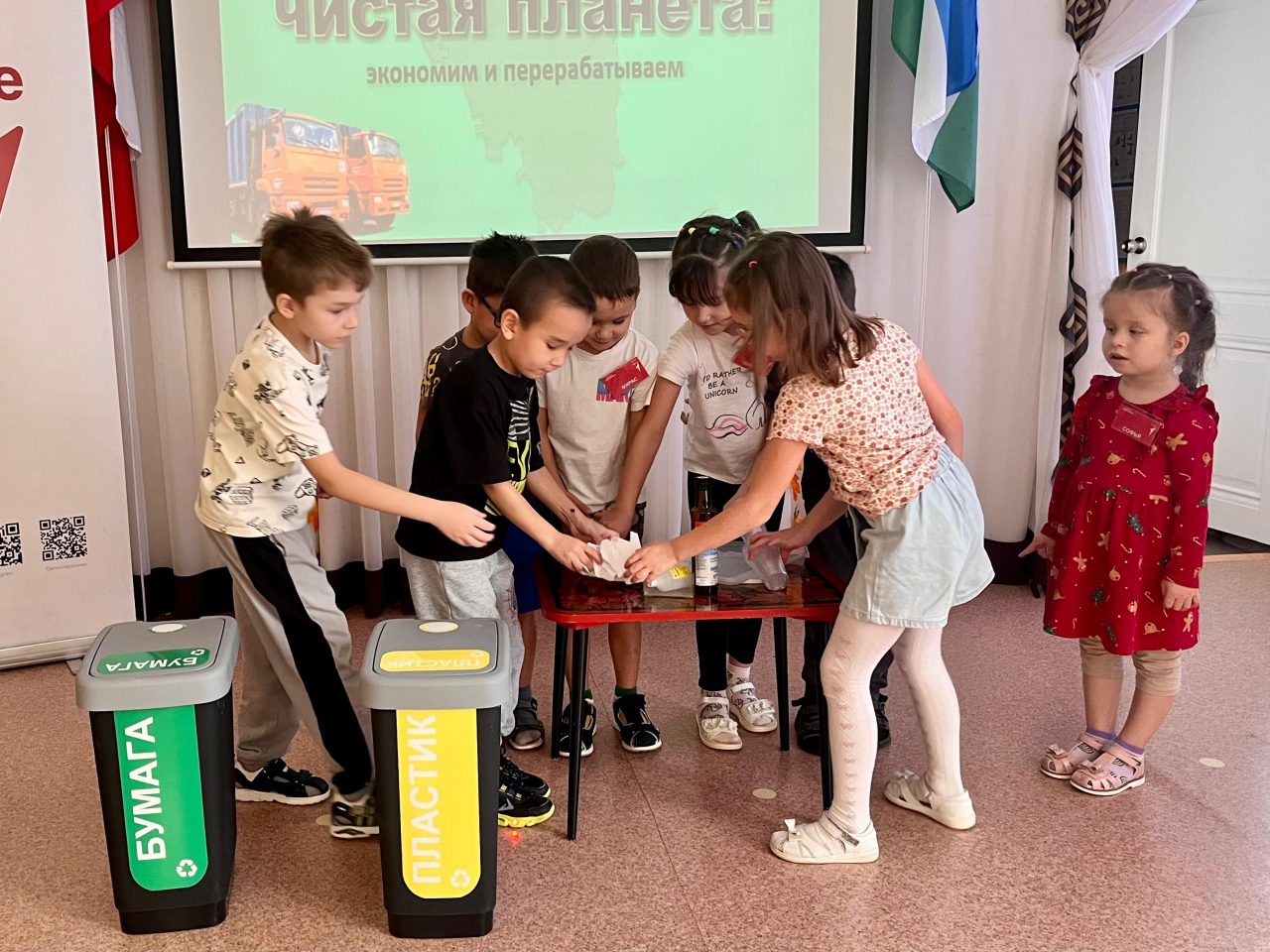АО «Спецавтохозяйство по уборке города» продолжает просветительскую работу. Увлекательный экологический урок «Чистая планета: экономим и перерабатываем» прошёл для дошкольников МАОУ Центр образования №15 им. Героя РФ Р.Р. Сахабутдинова.