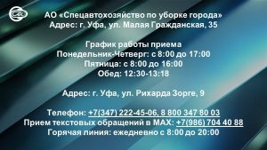 Для вашего удобства и оперативного взаимодействия с 1 февраля 2026 года меняем график работы контакт-центра АО «Спецавтохозяйство по уборке города».