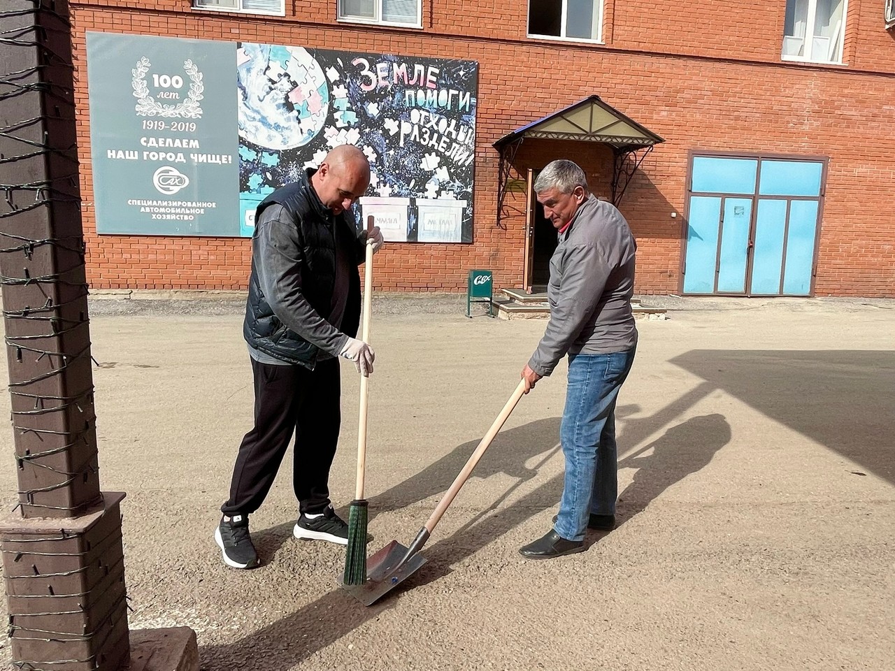 Мы надеваем перчатки, берем в руки метлы, грабли, кисти и… вперед – наводить порядок !