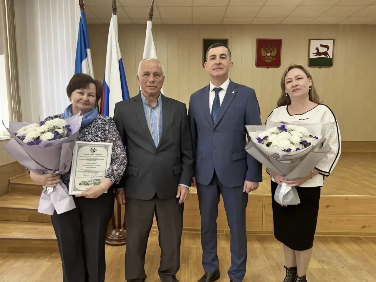 Сегодня состоялось награждение сотрудников АО «Спецавтохозяйство по уборке города», отметивших в апреле свой юбилей. Генеральный директор Ильдар Абдуллин лично вручил Почетные грамоты и подарки от предприятия именинникам.